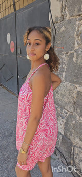 Son imprimé moderne et ses bretelles réglables en font un vêtement polyvalent qui peut être porté avec ou sans ceinture.